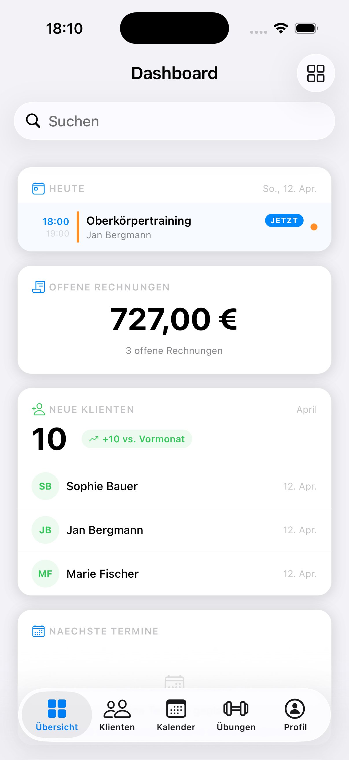 Bleibt Excel. WhatsApp. Ein Notizbuch. Und das Gefühl, dass du für deinen Papierkram mehr Zeit aufbringst als für deine Klienten.
